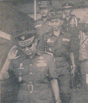 JENDERAL SOEHARTO, JENDERAL HR DHARSONO, JENDERAL IBRAHIM ADJIE, 20 JULI 1966. “Latar belakang kedua, tak lain adalah kenyataan bahwa di bawah kepemimpinan Mayor Jenderal Ibrahim Adjie, tak pernah ada pembersihan internal Divisi Siliwangi terhadap perwira-perwira yang ada dalam pengaruh PKI. Beberapa di antara perwira ini justru memegang sejumlah posisi teritorial yang penting di beberapa daerah Jawa Barat, dan berperan mencegah terjadinya gerakan pembalasan kepada massa PKI seperti yang terjadi Jawa Tengah dan Jawa Timur”. (foto FL/repro Mingguan Mahasiswa Indonesia).