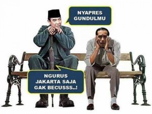 JOKOWI DAN SOEKARNO August 10, 2015 300 × 225 Presiden Jokowi, Dari Kritik Hingga ‘Penghinaan’ Perhatikan gambar karikatural Soekarno dan Jokowi ini. Tetapkan dalam hati anda, ini penghinaan atau bukan? Begitu pula gambar-gambar lain di halaman ini.