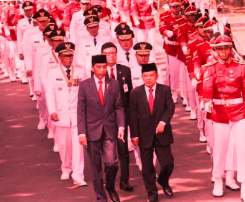PARADE JOKOWI DAN GUBERNUR BARU DI ISTANA. Jabatan kepala daerah tidak memberi hak seseorang menjadi kuasa lahir batin dari orang per orang warga negara di daerahnya. Hak politik orang per orang warganegara tak bisa diwakilkan. Hak politik tetap menjadi hak prerogatif setiap warganegara. (Foto download Liputan 6)