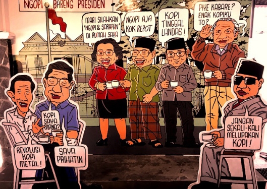 KARIKATUR NGOPI BARENG PARA PRESIDEN, LOCO CAFE STASIUN TUGU. Tokoh Peristiwa 15 Januari 1974, Hariman Siregar (15/1), menyebut “persoalan kesenjangan sosial sudah kami resahkan sejak 45 tahun silam.” Ia menganggap pembangunan kini malah membuat kesenjangan sosial semakin lebar, yang kaya makin kaya, yang miskin makin miskin. “Kami belum melihat pemerataan ekonomi dan pembangunan yang merata. Tidak ada keberpihakan penguasa yang benar-benar fokus ditujukan untuk masyarakat bawah.” (Gambar download)