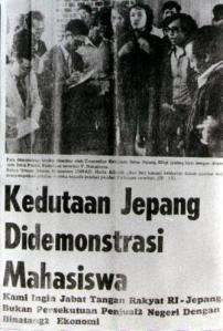Kritik mahasiswa tahun 1970-an juga diarahkan kepada aspek-aspek ketidakadilan sosial dan ketidakadilan ekonomi. Salah satu yang disorot adalah masalah percukongan, yaitu pola saling menguntungkan antara perorangan dalam kekuasaan dengan kalangan cukong yang dikaitkan dengan segelintir tokoh dunia usaha dari kalangan etnis cina, sehingga tak jarang menimbulkan letupan-letupan membahayakan beraroma rasial. Tapi isu yang kemudian berkembang, yang bagaimanapun terkait tali temali percukongan, adalah sikap anti Jepang. Kebencian bukan kepada manusia Jepang tetapi terhadap pola perilakunya yang dalam keikutsertaannya pada kehidupan ekonomi Indonesia amat mencerminkan ciri ‘economic animal’.