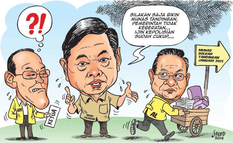 Meski seringkali menjengkelkan untuk melihat perilaku akrobatik yang kerap beraroma otoriter dari sejumlah tokoh Golkar di bawah kepemimpinan Aburizal Bakrie, tak boleh tidak harus diakui bahwa Munas Golkar di Bali yang harus dianggap sah karena praktis dihadiri oleh DPD-DPD yang sah dari seluruh Indonesia. Sebaliknya, tidak sulit untuk melihat bahwa Munas di Ancol adalah artifisial, bersifat mengakali konstitusi partai. Tapi pemerintahan Jokowi yang diwakili dalam hal ini oleh Kementerian Hukum dan HAM, mengambil sikap sangat abu-abu.