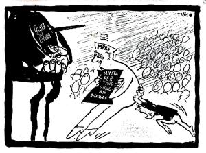 Sementara itu, Mingguan Mahasiswa Indonesia, pada penerbitannya setelah peristiwa menurunkan karikatur Dendi Sudiana yang menggambarkan adegan pembunuhan itu dengan teks “A Day after your order, General !” –Sehari setelah perintah anda, Jenderal. Soalnya, hanya sehari sebelum peristiwa, dalam perayaan Hari Ulang Tahun ABRI 5 Oktober 1970, Jenderal Soeharto mengeluarkan suatu perintah harian kepada jajaran ABRI yang isinya meminta ABRI tidak menyakiti hati rakyat. Ini, malah membunuh rakyat, hanya sehari sesudahnya.